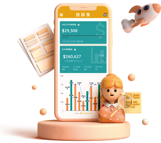 自從導入『慧探集』後,我們省下大量製作報表的時間,更能專注在營運策略上!現在可隨時用系統來看營運走勢,省時又精準,每週例會都靠它!